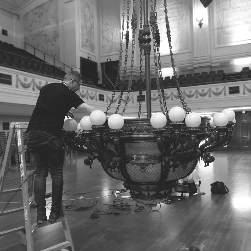 In 2019, City of Melbourne entrusted Lightmoves with modernising the lighting technology of the Main Hall whilst maintaining its antique fixture housing.