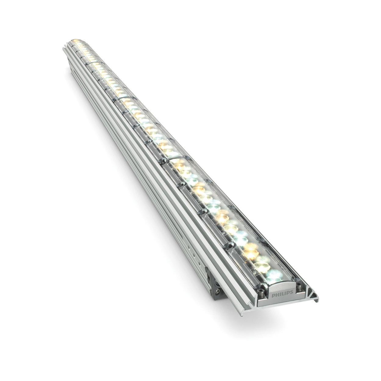 iW Graze MX Powercore features the most light output in our line of intelligent white light grazing fixtures for high-intensity multi-story façade and surface illumination. Featuring Powercore technology, fixtures process power directly from line voltage, eliminating the need for external power supplies. These high-performance fixtures use channels of cool, neutral, and warm white LEDs to produce color temperatures ranging from 2700 K – 6500 K. Four fixture lengths and five beam angles support a large range of façade or surface illumination applications.