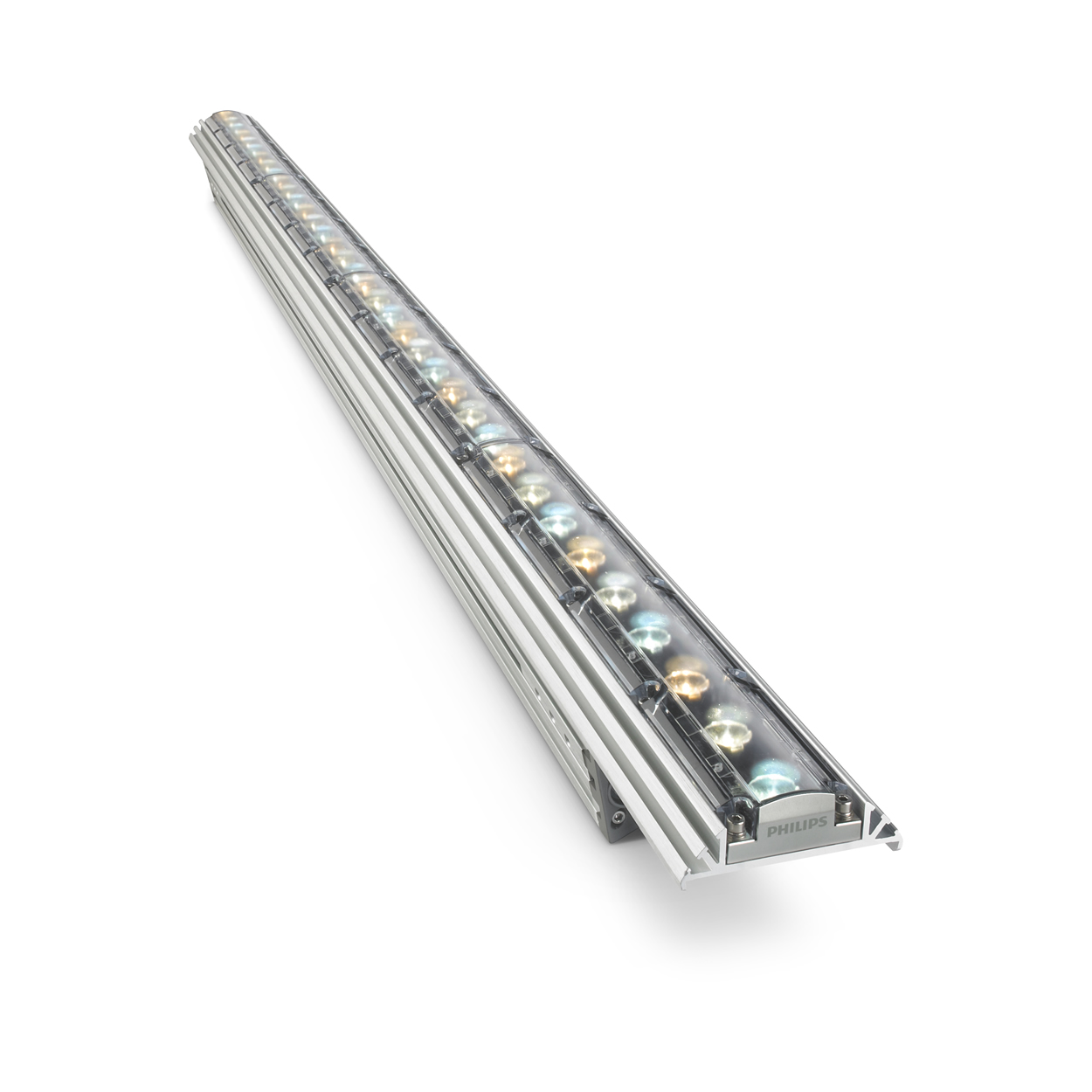 With light output of up to 673 lumens and a power consumption of only 15 W per foot, iW Graze QLX Powercore is perfect for surface illumination applications calling for a balance of cost and performance. Featuring Powercore technology, fixtures process power directly from line voltage, eliminating the need for external power supplies. These versatile fixtures use channels of cool, neutral, and warm white LEDs to produce color temperatures ranging from 2700 K – 6500 K. Four fixture lengths and five beam angles support a large range of façade or surface illumination applications.