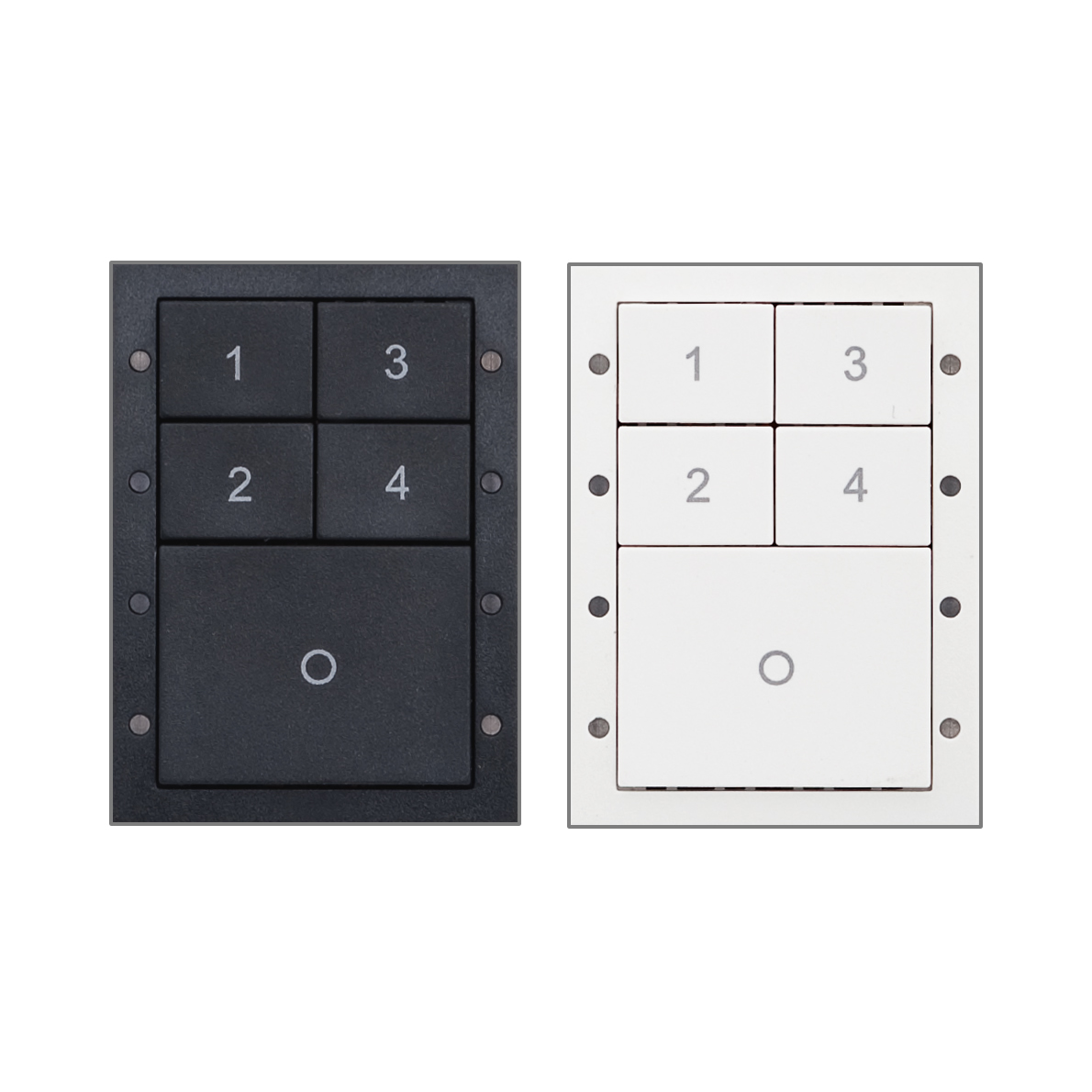 The 13xx modular panels are a customisable, DALI-compatible range of user interfaces that allow control of the lighting system. Each module is fitted with indicator LEDs and an infrared receiver that gives the option of remote operation using DIGIDIM hand-held remote controls. The hand-held remote also allows additional control of the system’s functions and can be used as a programming device on simple systems.