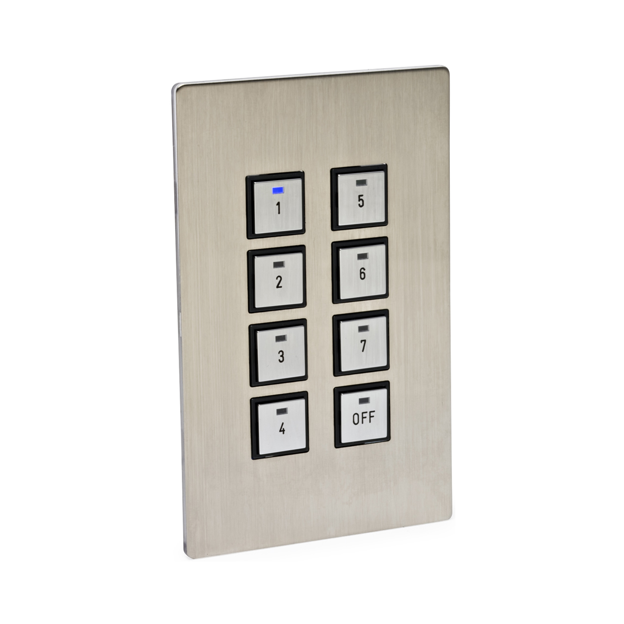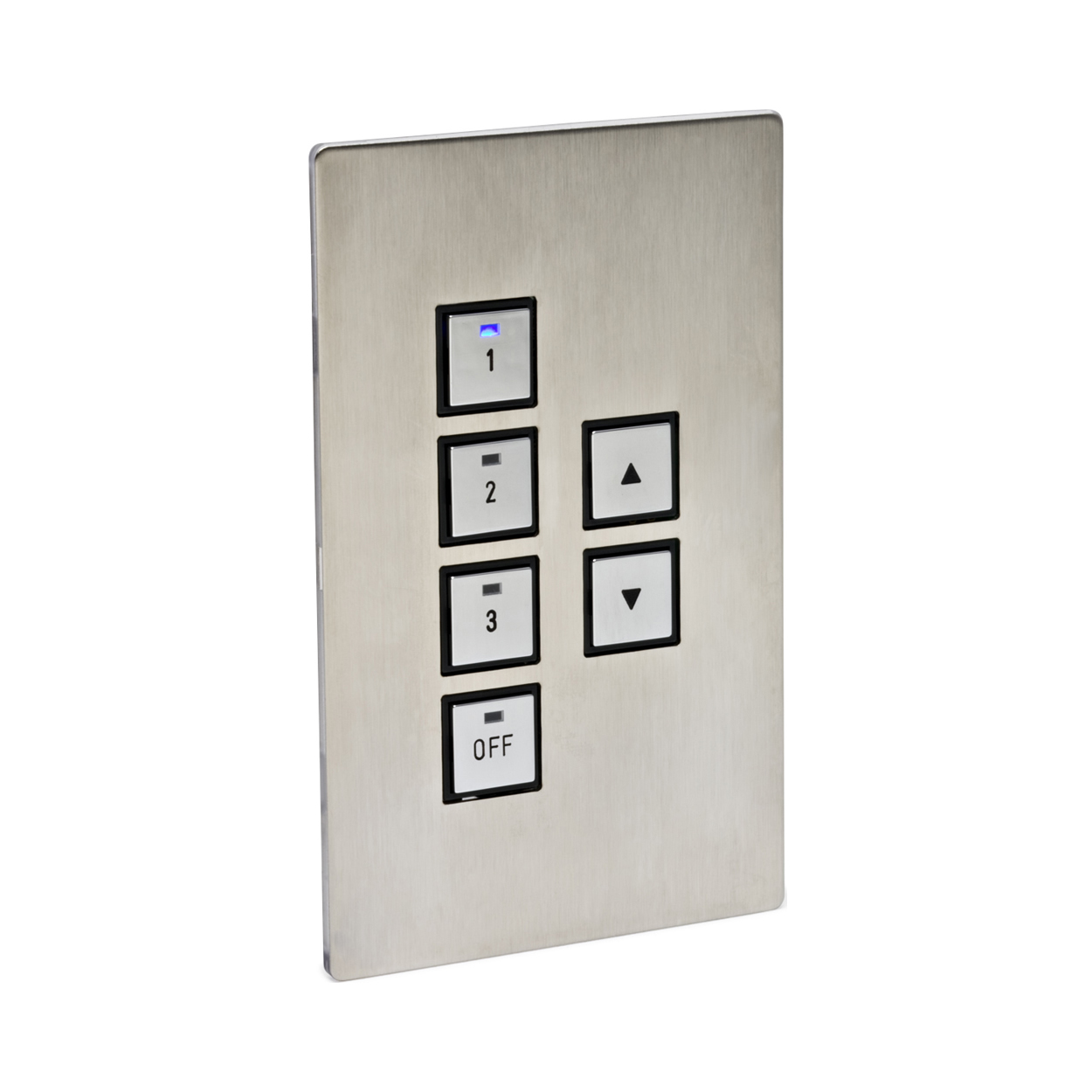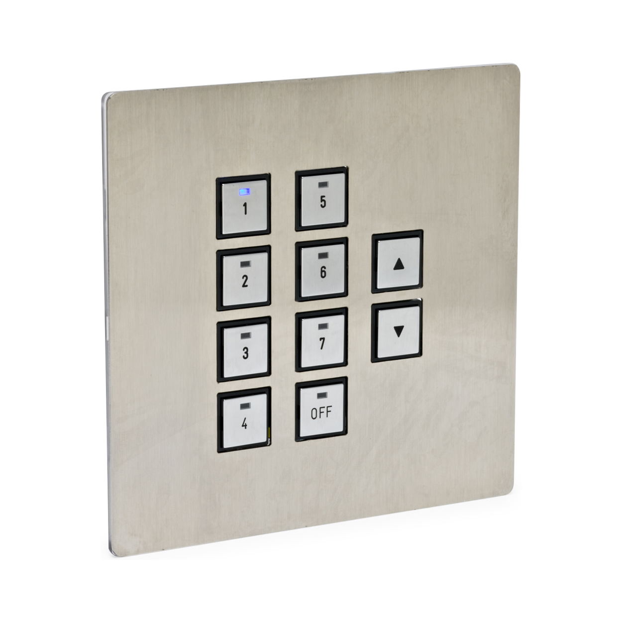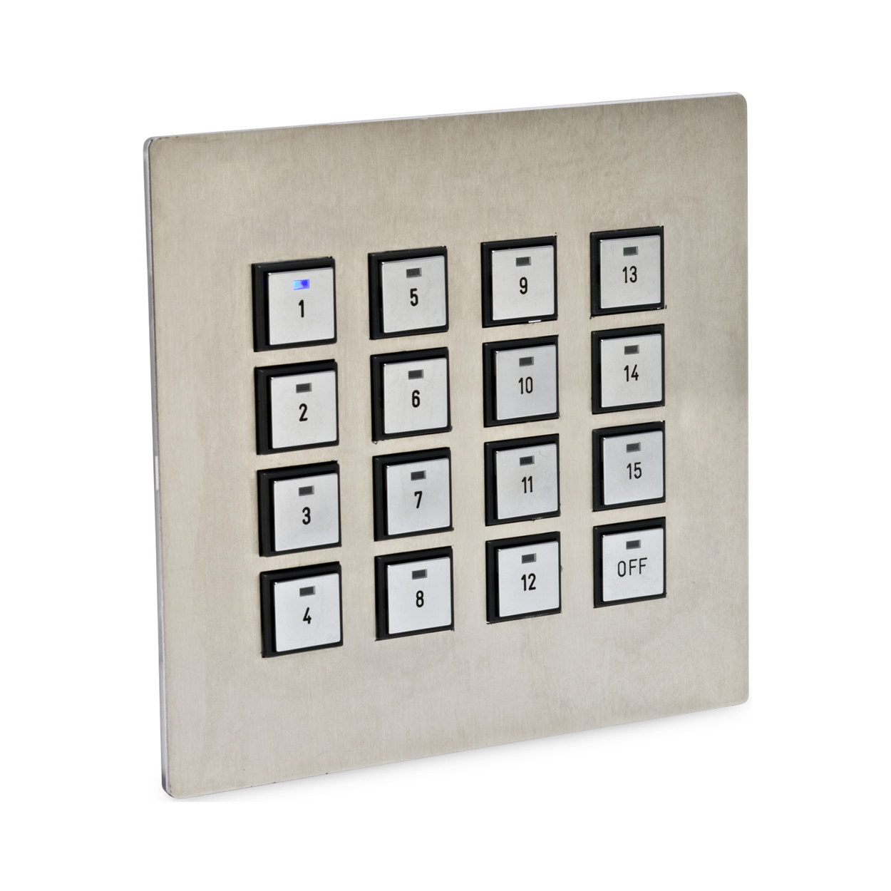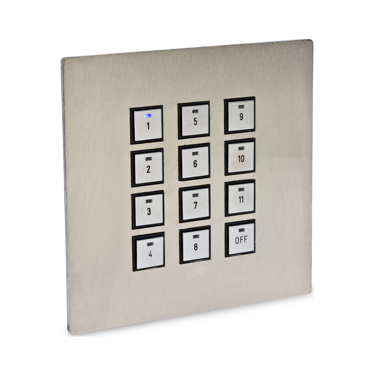 - LED status indicators on each button — Provides tactile and visual feedback on system operation.