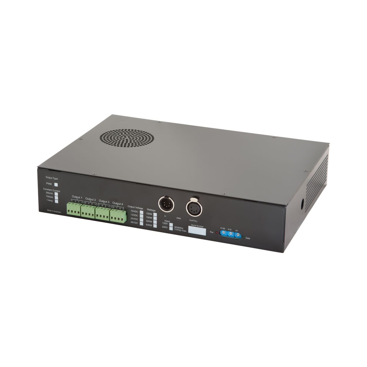 Control 12 is available in 2 versions, built in power supply or external power supply. New SpaceDim high resolution and high speed technology enables smooth and full-range dimming of LEDs down to zero, simulating traditional tungsten dimming curves. This enables a more natural effect, and is perfect for all applications including architectural, theatrical, film and TV work.